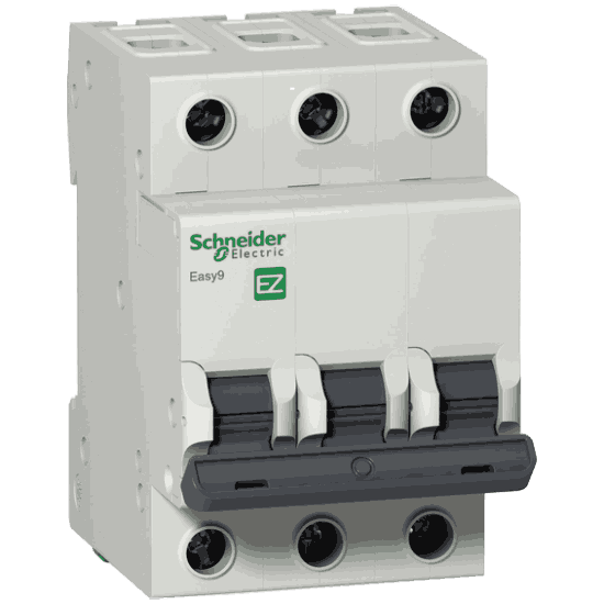Выключатель автоматический трехполюсный типа Schneider Electric Easy9 3P 6А тип С 4.5kA предназначен для защиты электрических цепей переменного тока частотой 50 Гц напряжением до ~400 В от перегрузок и токов короткого замыкания, а также для оперативных вкл./отк. электрических цепей на промышленных и бытовых объектах. Работает при ном. силе тока коммутации 6 А. Имеет коммутационную электрическую износостойкость 4000 циклов и предельную коммут. способность 4,5 кА.