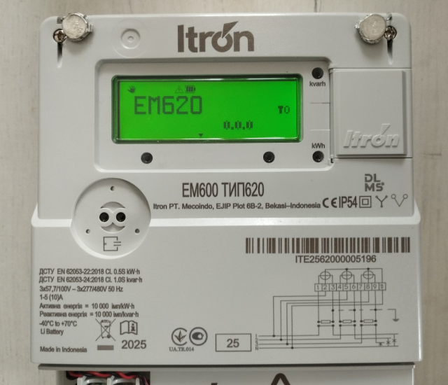 Счетчик Itron EM620 CT 1-5(10)A "ЗЕЛЕНЫЙ" ТАРИФ, предназначен для измерения электрической активной и реактивной энергии (A±, R±), организации многотарифного учета в трехфазных цепях переменного тока, с трансформаторным подключением по току и прямым/трансформаторным по напряжению к цепям генератора/нагрузки. Крепление для установки на щиток. Номинальное напряжение от 3×57.7/100В до 3×277/480В, сила тока 1-5(10) А, класс точности 0.5S/1S. Имеет имп. выходы, оптопорт, RS485, RS232.